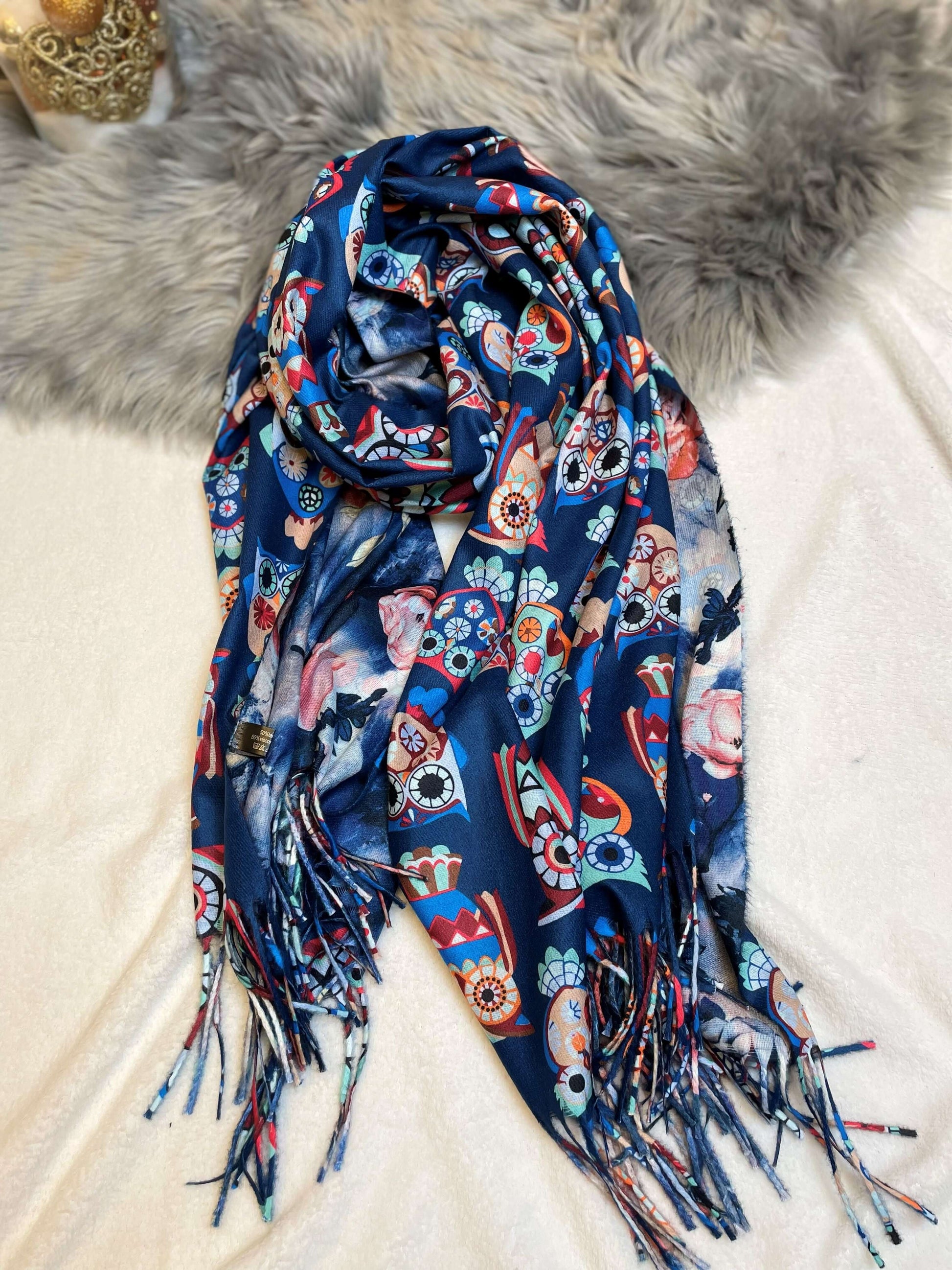 Entdecken Sie unseren farbenfrohen Eulenschal – das perfekte Accessoire für alle, die Natur und Stil lieben. Mit seinem lebendigen, bunten Blumen-Muster verziert mit niedlichen Eulen-Motiven bringt dieser Schal Persönlichkeit in jeden Look. Das weiche Material schmiegt sich angenehm um Hals und Schultern und sorgt für Wärme ohne zu beschweren. Ideal für Herbst und Winter, passt dieser Statement-Schal zu Casual- und eleganten Outfits gleichermaßen. Ein Must-have für alle, die ihre Garderobe mit einem Hauch von Verspieltheit und Farbe bereichern möchten.