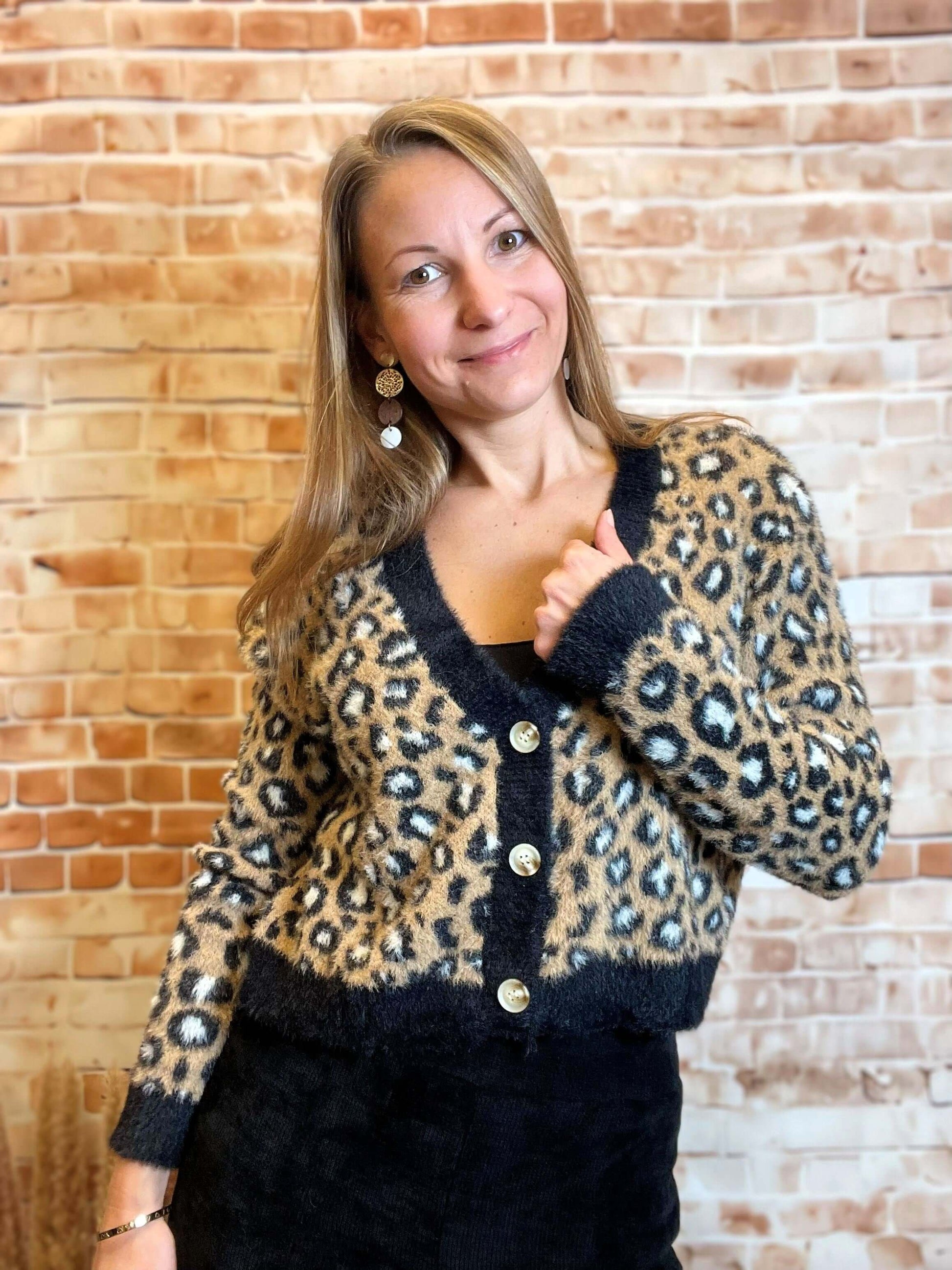 Diese kurze Plüschweste mit Knöpfen und Leopardenmuster verbindet modischen Ausdruck mit angenehmem Tragekomfort. Das weiche Material sorgt für Wärme und ein luxuriöses Hautgefühl, während der auffällige Print Ihrem Outfit eine stylishe Note verleiht. Ideal für den Übergang oder als Statement-Piece in Ihrer Garderobe.