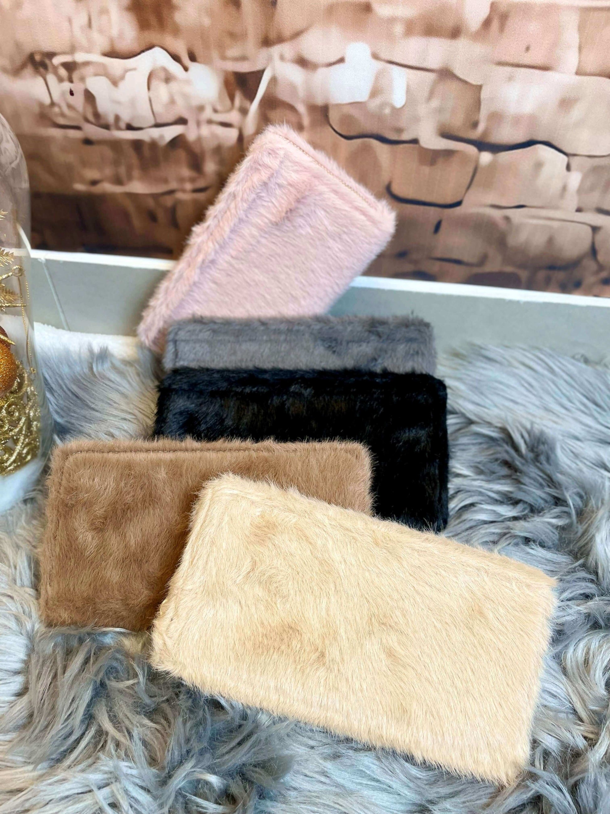 Plüsch Geldbörse mit Zipp - Einfarbig
