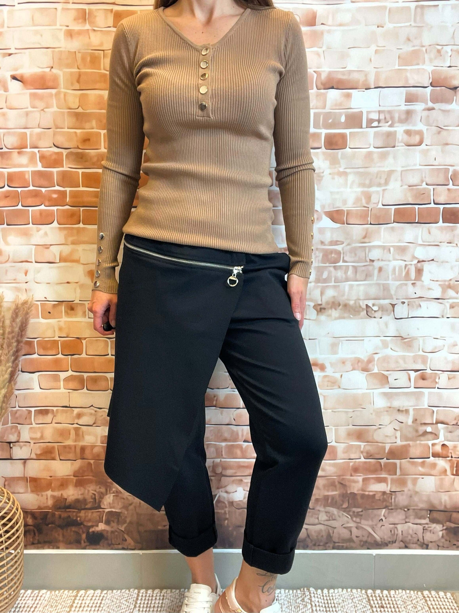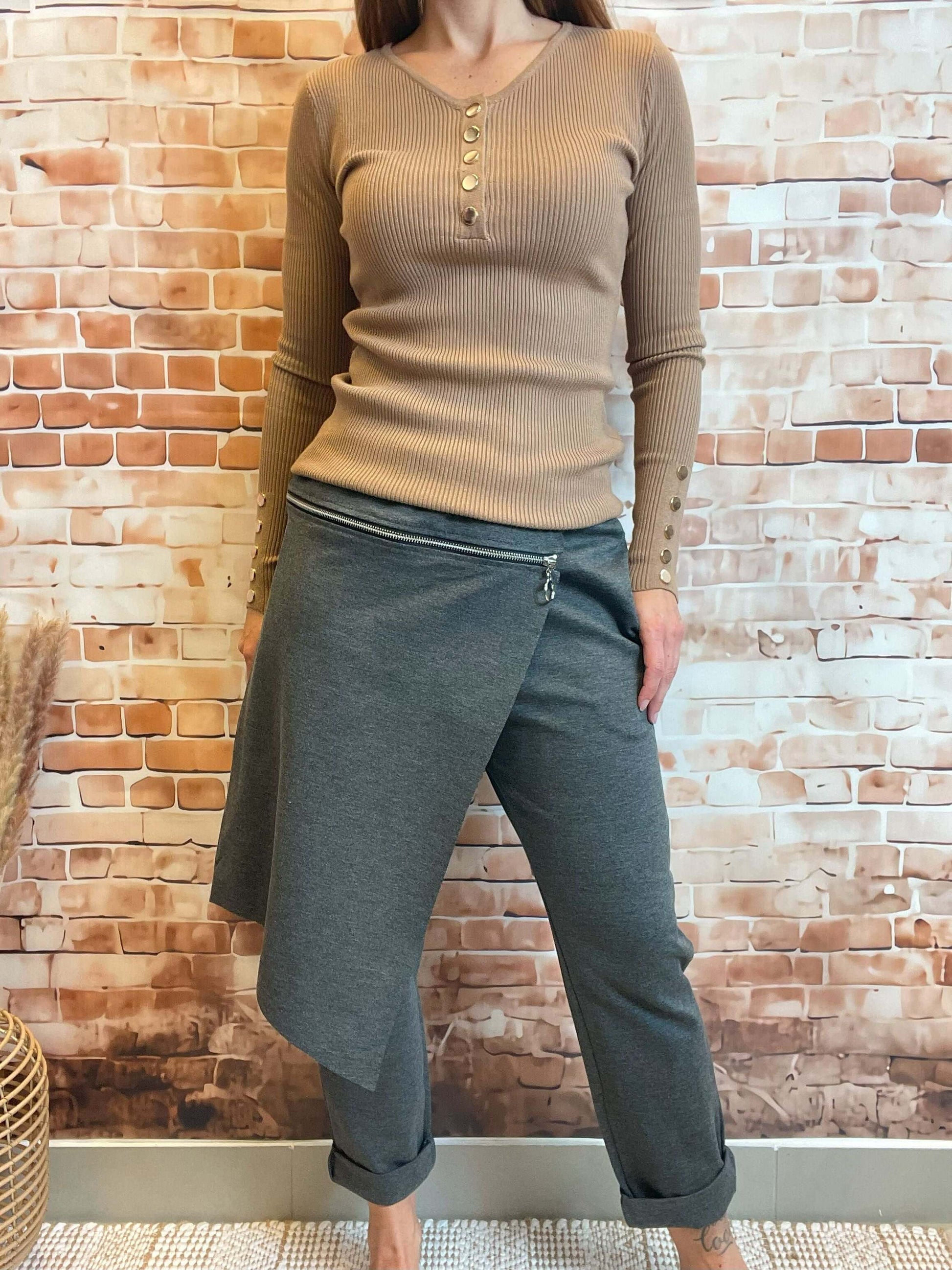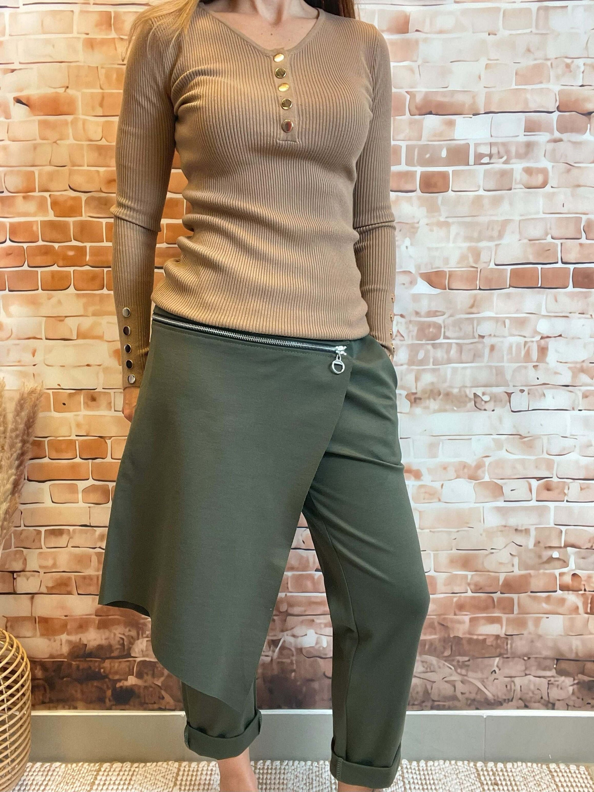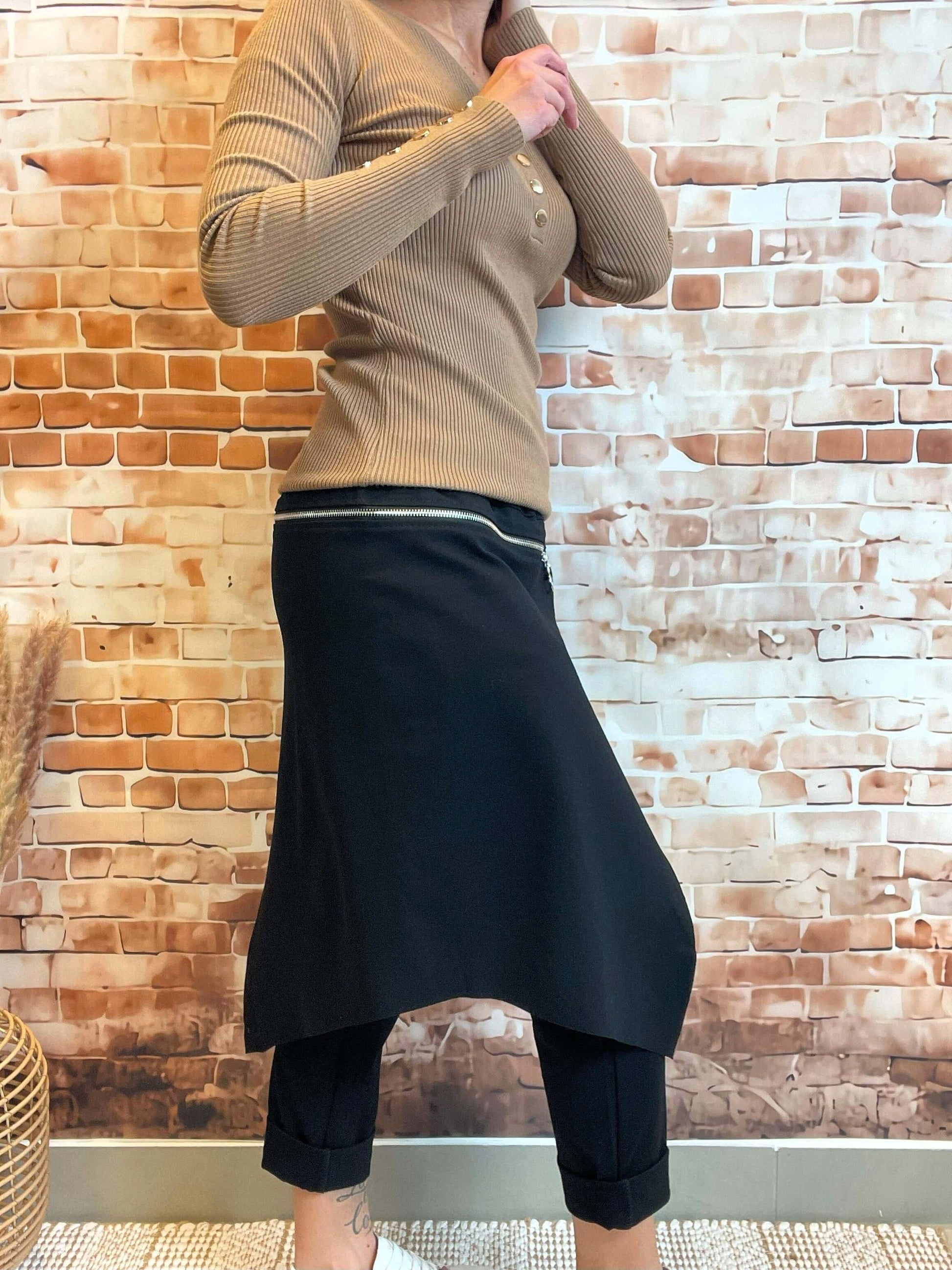 Diese Stoff-Schlupfhose besticht durch ihre modische Schürze, die als stilvolles Highlight dient. Der praktische Zipp ermöglicht ein einfaches Abnehmen der Schürze, wodurch sich die Hose flexibel an verschiedene Einsatzbereiche anpasst. Hochwertiges Material garantiert hohen Komfort und Langlebigkeit – ideal für Freizeit und Damen mit modischem Anspruch.