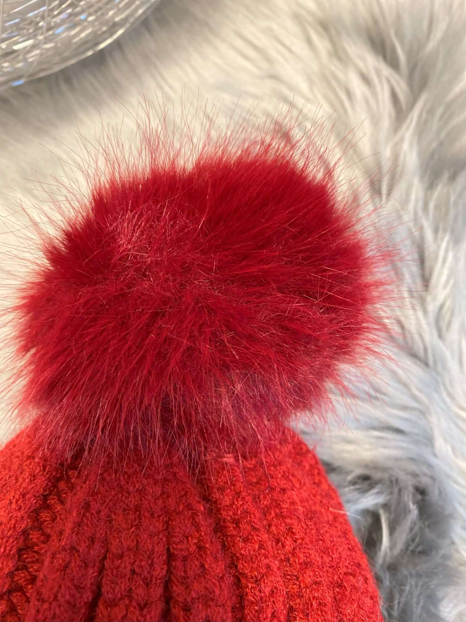 Strickhaube mit Pommel (Kunstfell)